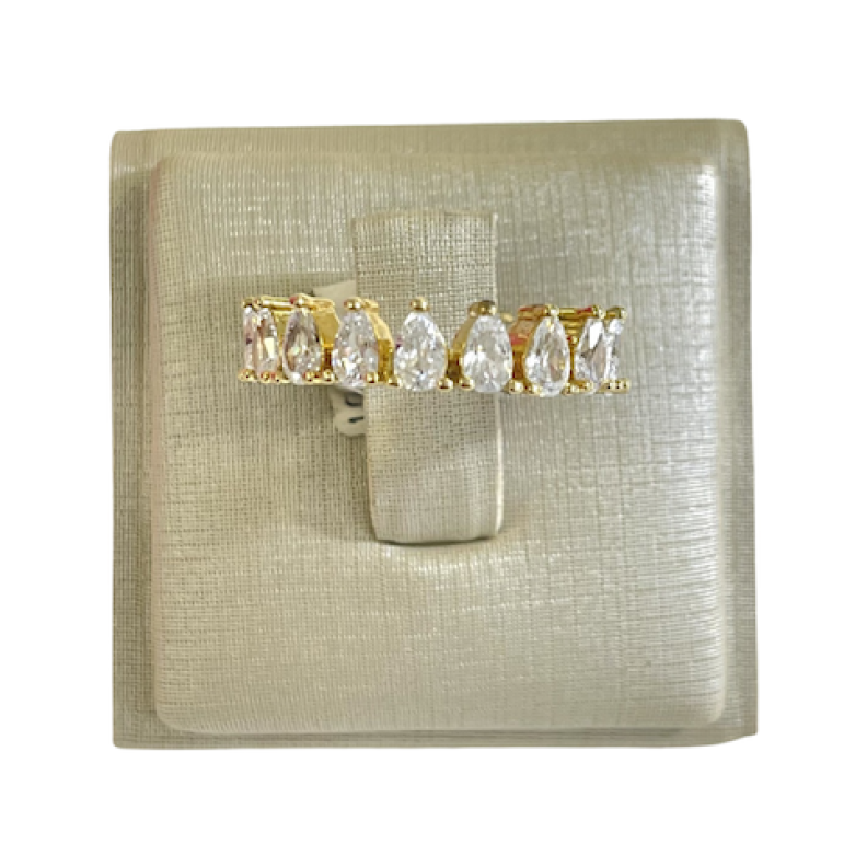 LANÇAMENTO ADICIONAR PRODUTO Anel gota de cristal com micro cravejamento largo ao redor, em Ródio Branco