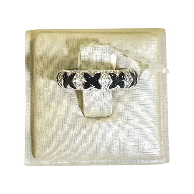 Anel aliança esmaltada X preta com cravejamentoConfira opiniões e avaliações de clientes!