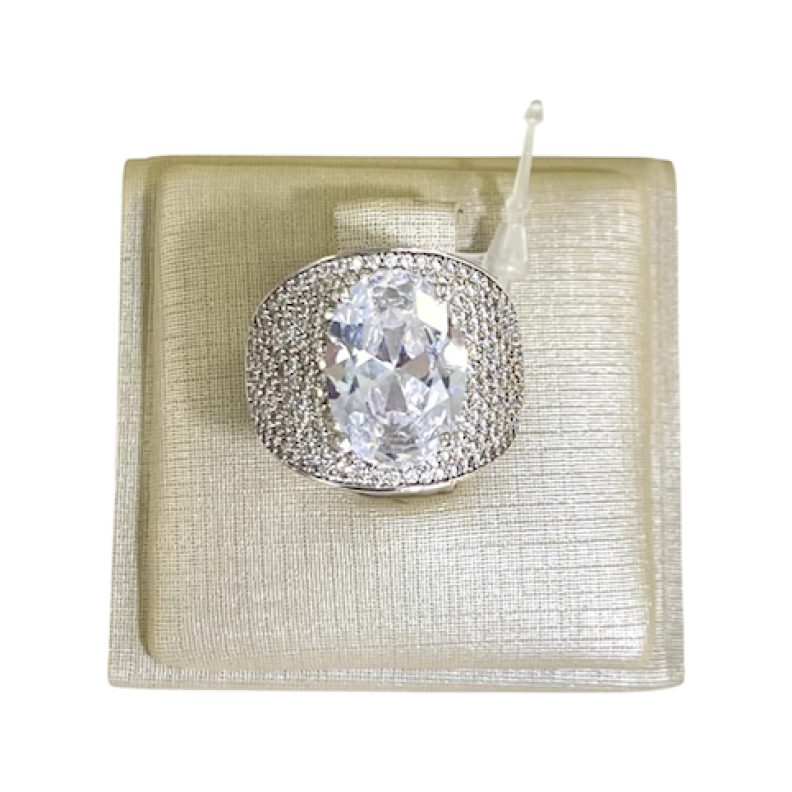 Anel base cravejada com cristal G ovalConfira opiniões e avaliações de clientes!