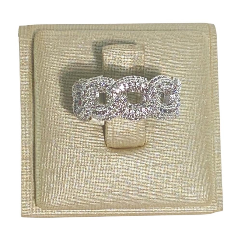 Anel elos largos totalmente cravejados, em toda circunferênciaConfira opiniões e avaliações de clientes!