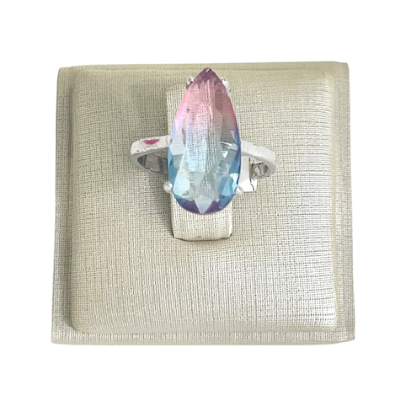 LANÇAMENTO ADICIONAR PRODUTO Anel gota de cristal com micro cravejamento largo ao redor, em Ródio Branco