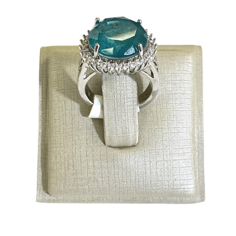 LANÇAMENTO ADICIONAR PRODUTO Anel gota de cristal com micro cravejamento largo ao redor, em Ródio Branco