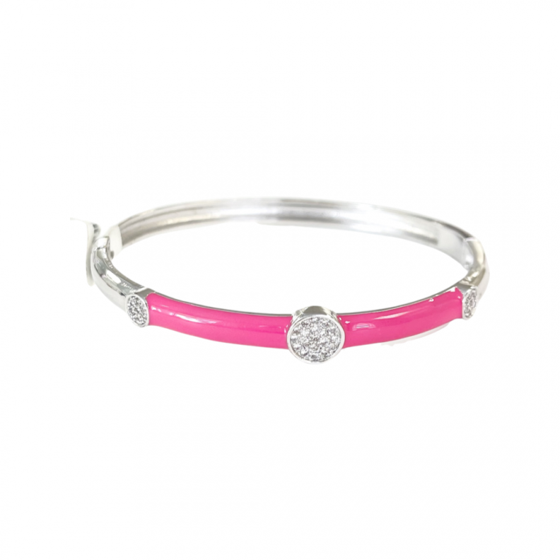 Bracelete Três círculos cravejados esmalte rosaConfira opiniões e avaliações de clientes!