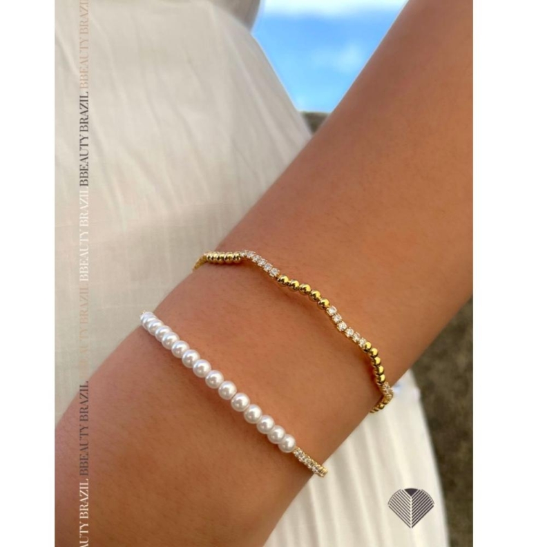 Bracelete Zirconias com Perolas em ouroConfira opiniões e avaliações de clientes!