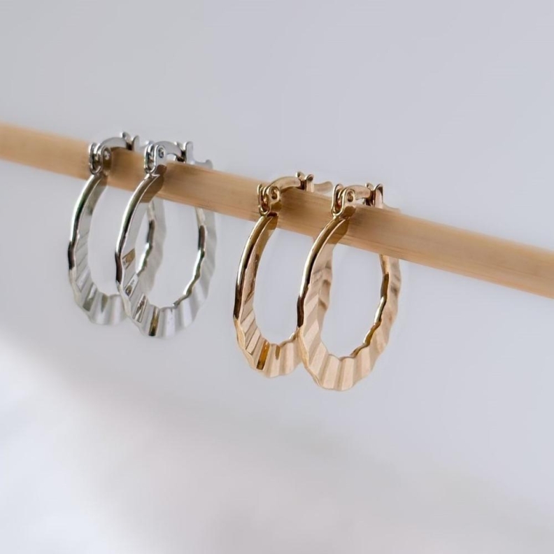 Brinco Argola Plissada e lisa, em ouro.Confira opiniões e avaliações de clientes!