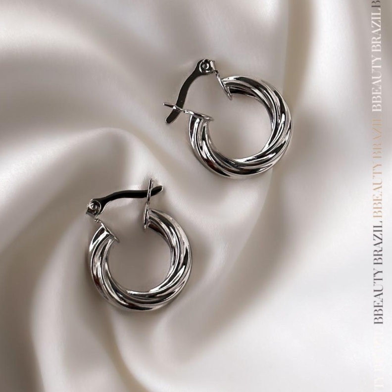 Brinco Argola Torcidinha e lisa, em ródio.Confira opiniões e avaliações de clientes!