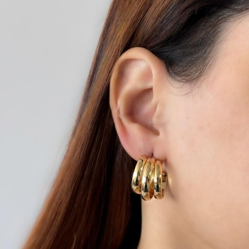 Brinco Argola Três Vias Lisas em OuroConfira opiniões e avaliações de clientes!