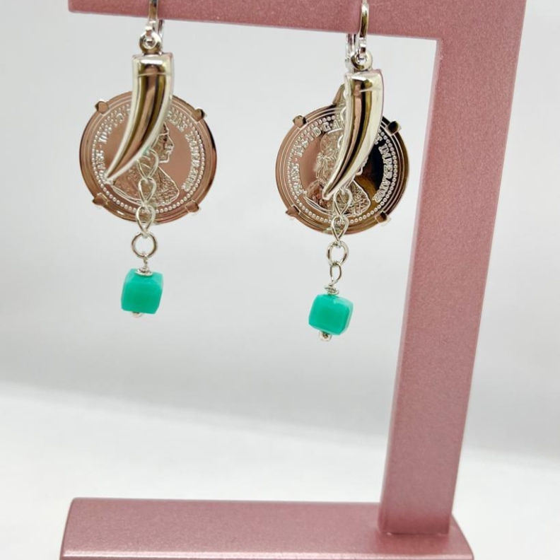 Brinco Argolinha medalha, dente e turquesaConfira opiniões e avaliações de clientes!