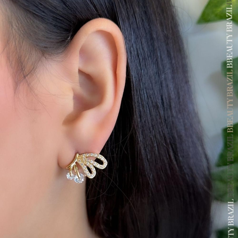 Brinco asa flor cravejada em ouroConfira opiniões e avaliações de clientes!