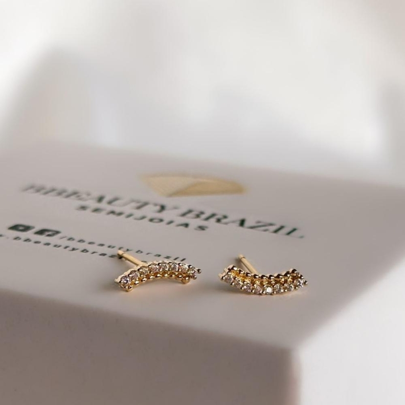 Brinco Barrinha torta cravejada em ouroConfira opiniões e avaliações de clientes!