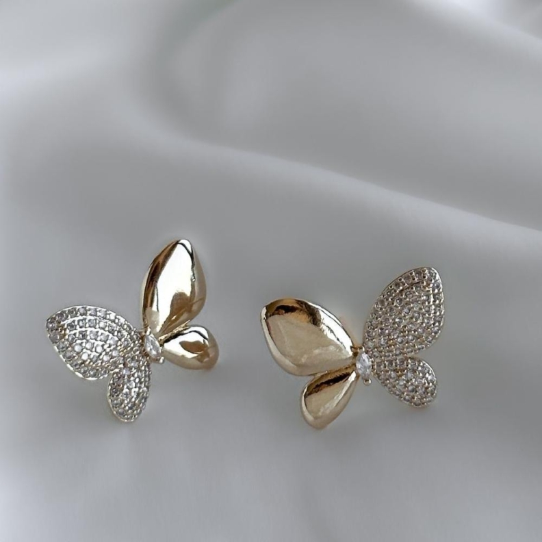 Brinco Borboleta Uma Face Cravejada em ouroConfira opiniões e avaliações de clientes!