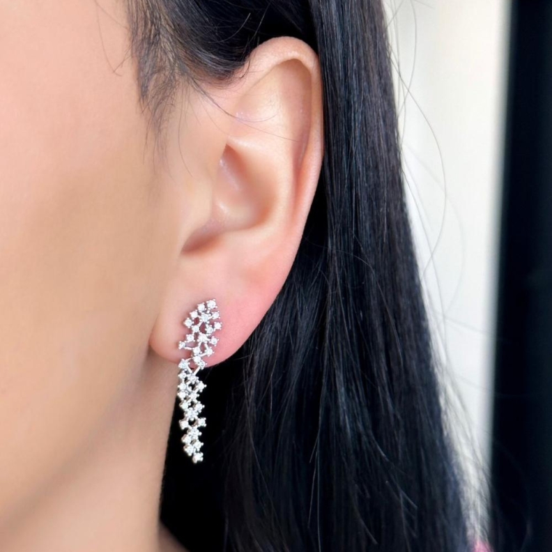Brinco Cascata de Zircônias, em Ródio BrancoConfira opiniões e avaliações de clientes!