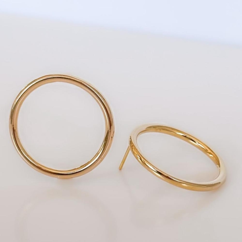 Brinco Círculo vazado e liso, em ouro.Confira opiniões e avaliações de clientes!