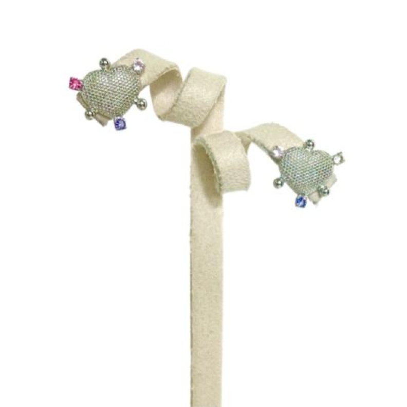Brinco Coração Canetado com zircônias coloridasConfira opiniões e avaliações de clientes!