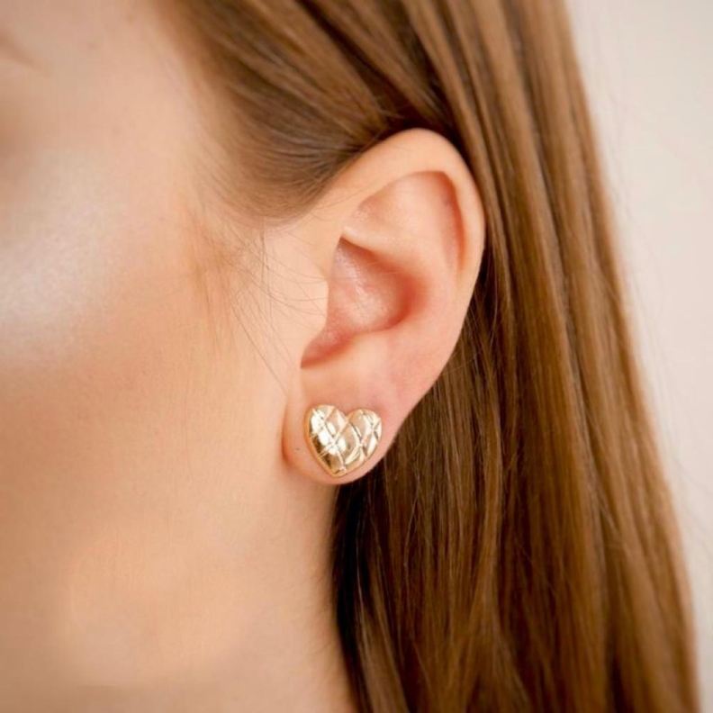 Brinco Coração Xadrez em ouroConfira opiniões e avaliações de clientes!