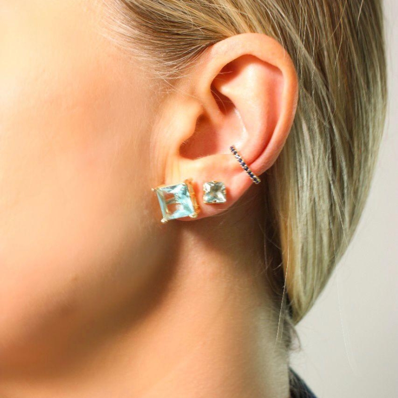 Brinco Cristal Azul Quadrado, em OuroConfira opiniões e avaliações de clientes!