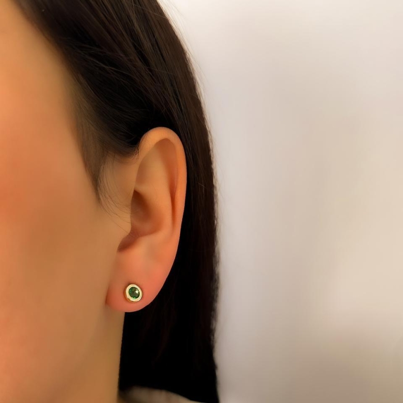 Brinco cristal esmeralda redondo, em ouroConfira opiniões e avaliações de clientes!