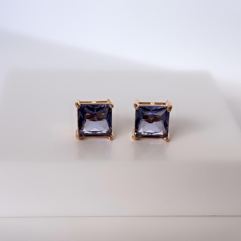 Brinco Cristal Lilás Quadrado, em OuroConfira opiniões e avaliações de clientes!