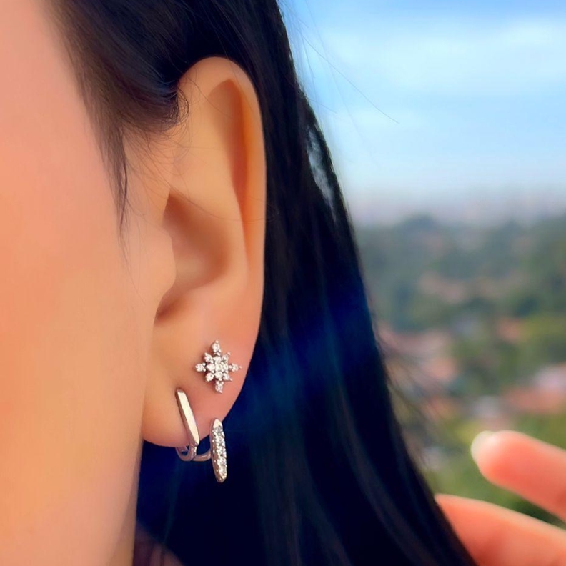 Brinco duas barras verticais em Rodio BrancoConfira opiniões e avaliações de clientes!