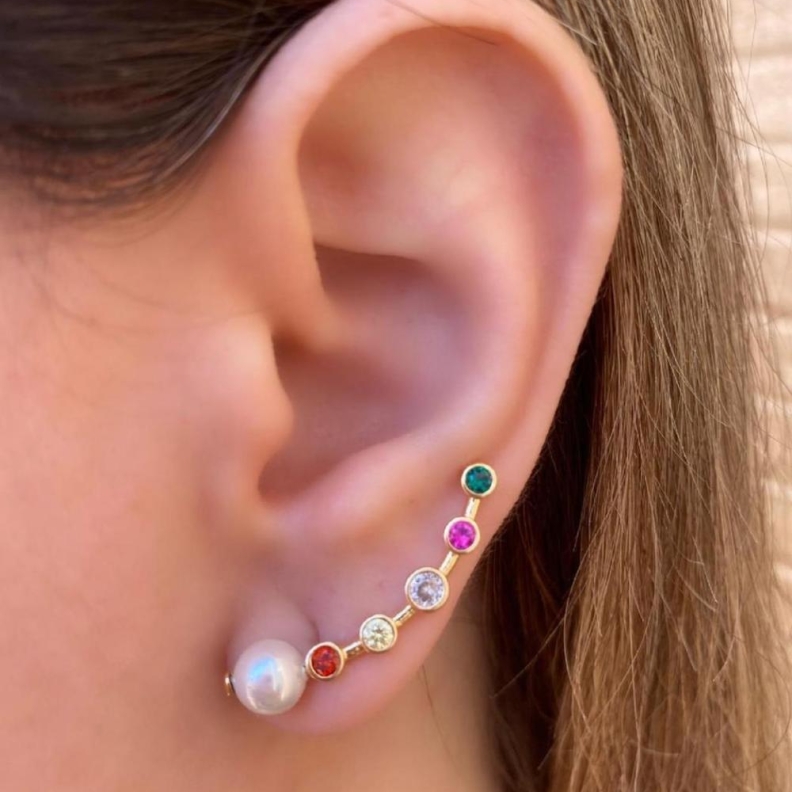 Brinco Ear Cuff cristais coloridosConfira opiniões e avaliações de clientes!