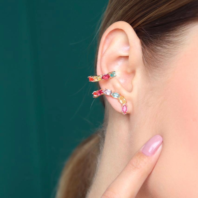 Brinco Ear Cuff Voltas Pedras Coloridas em Ródio BrancoConfira opiniões e avaliações de clientes!
