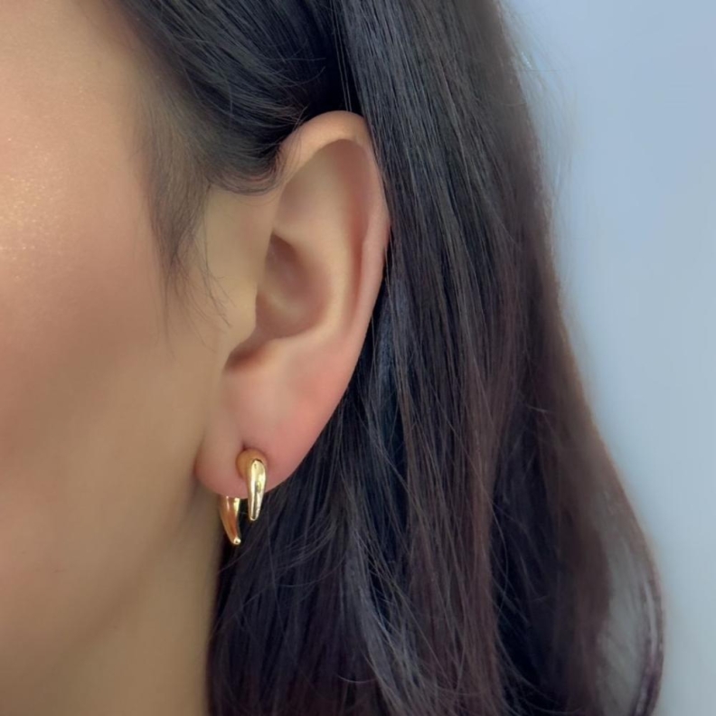 Brinco Ear Jacket pontas lisas, em ouro.Confira opiniões e avaliações de clientes!