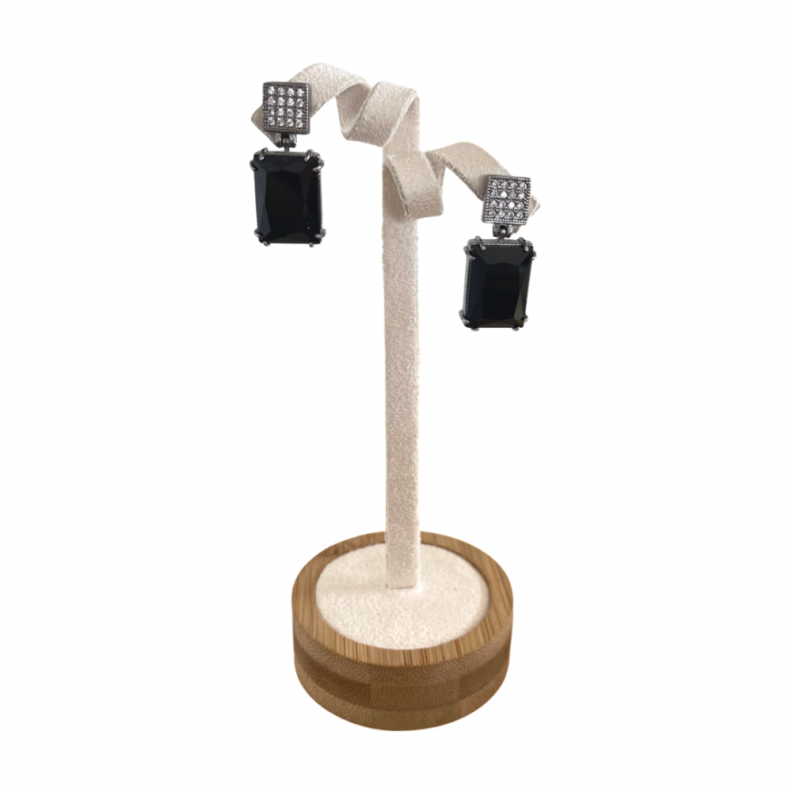 LANÇAMENTO ADICIONAR PRODUTO Brinco Cristal Fusion Original Quadrado com borda cravejada, em Rodio Negro
