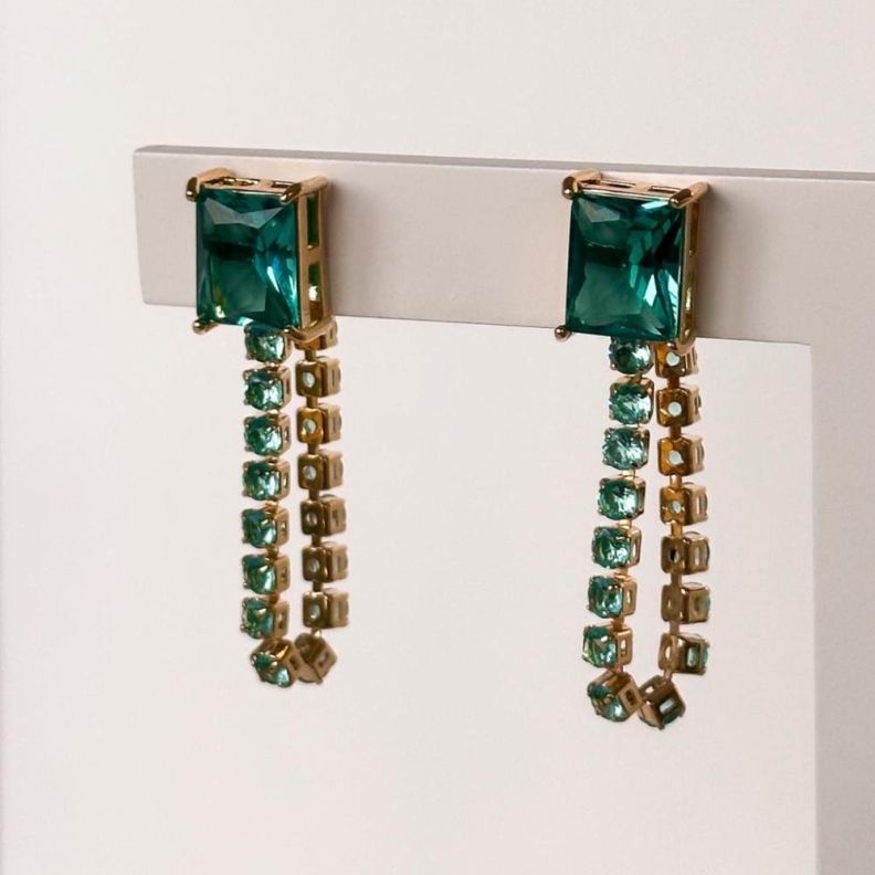 Brinco esmeralda verde com rivieira em ouroConfira opiniões e avaliações de clientes!