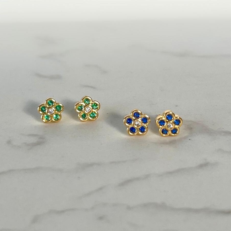 Brinco flor com cristal acqua em ouroConfira opiniões e avaliações de clientes!