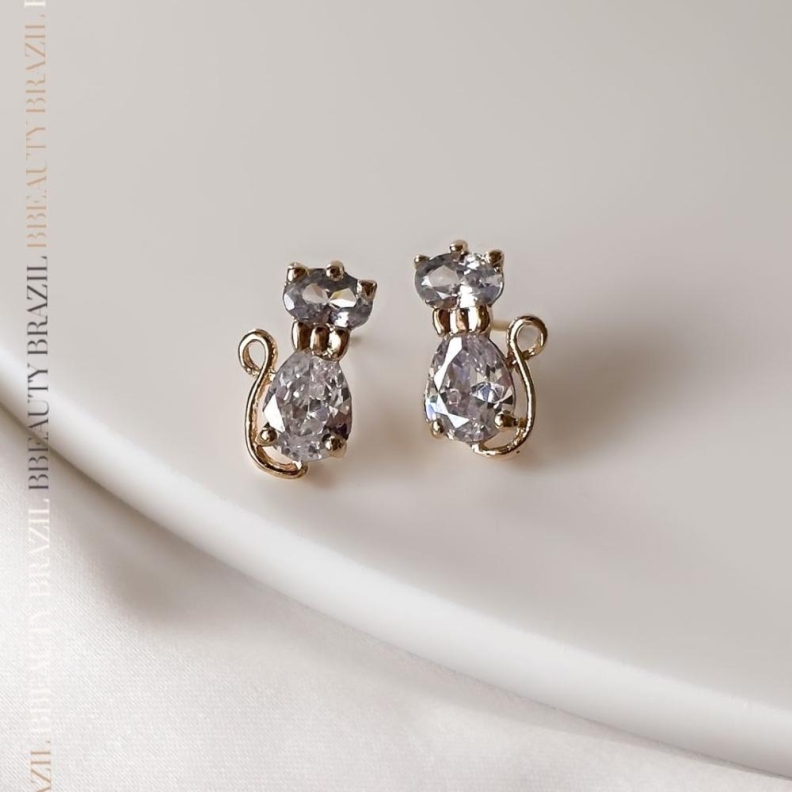 Brinco Gato de Cristal em ouroConfira opiniões e avaliações de clientes!
