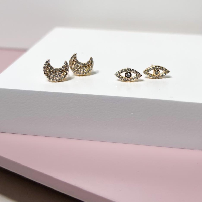 Brinco Olho Grego cravejado em ouroConfira opiniões e avaliações de clientes!