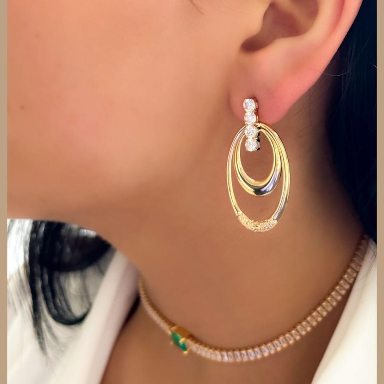 Brinco oval com tres cristais em ouroConfira opiniões e avaliações de clientes!