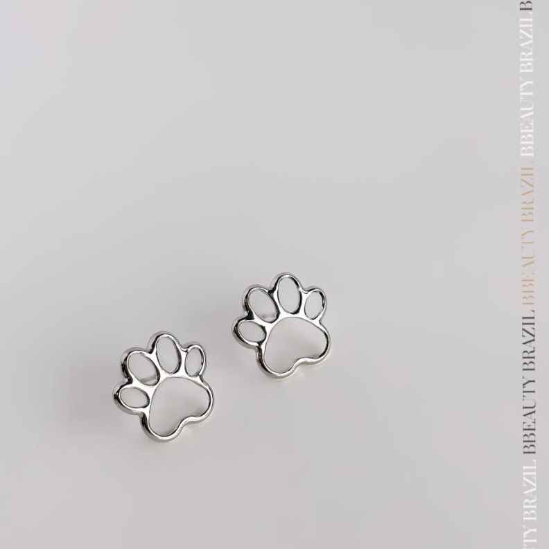 Brinco Patinha de Cachorro vazada, em ródio.Confira opiniões e avaliações de clientes!