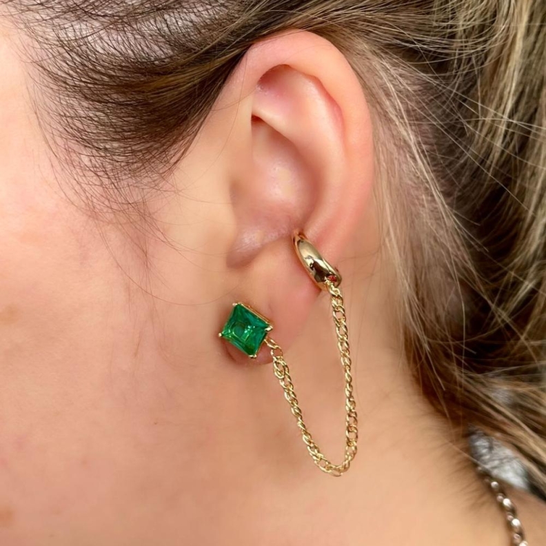 Brinco pedra verde com piercing em ouroConfira opiniões e avaliações de clientes!