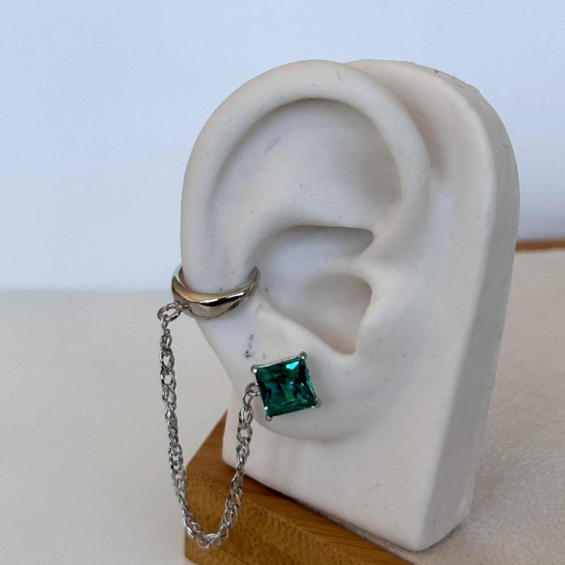 Brinco pedra verde com piercing em rodioConfira opiniões e avaliações de clientes!