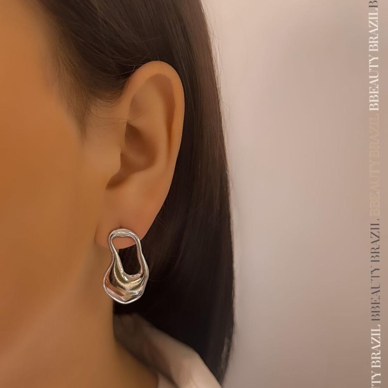 Brinco plaquinha achatadae vazada, em ródioConfira opiniões e avaliações de clientes!