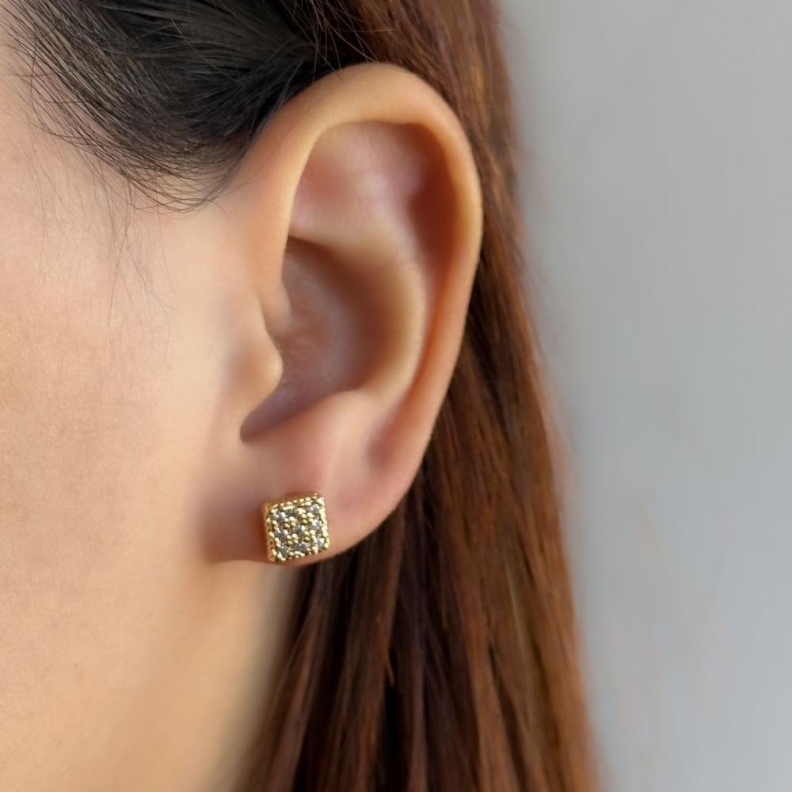 Brinco Quadrado com nove zircônias em ouroConfira opiniões e avaliações de clientes!