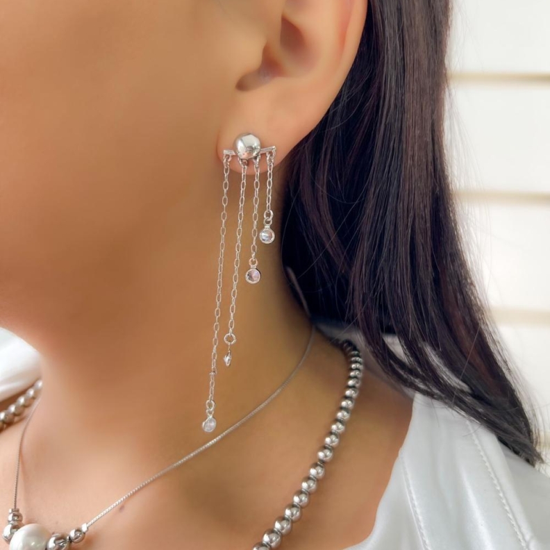 Brinco quatro fios com zirconia, em rodioConfira opiniões e avaliações de clientes!