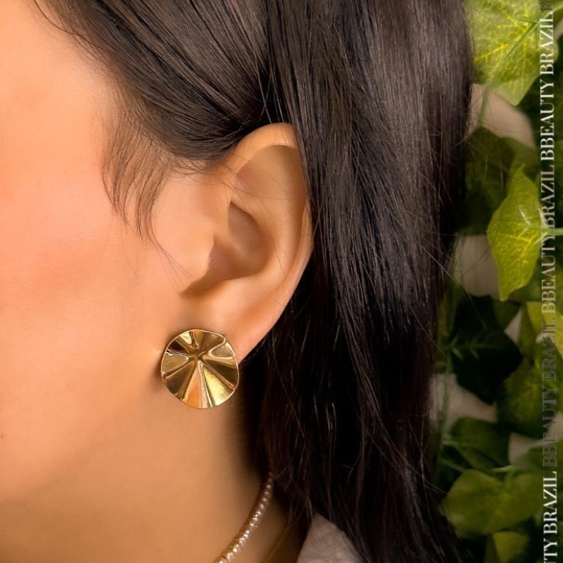 Brinco Redondo ondulado orgãnico, em ouro.Confira opiniões e avaliações de clientes!