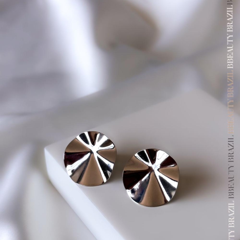 Brinco Redondo ondulado orgãnico, em ródio.Confira opiniões e avaliações de clientes!