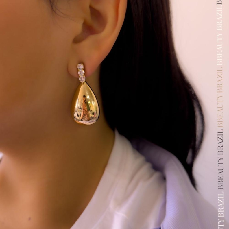 Brinco três cristais com gota em ouroConfira opiniões e avaliações de clientes!