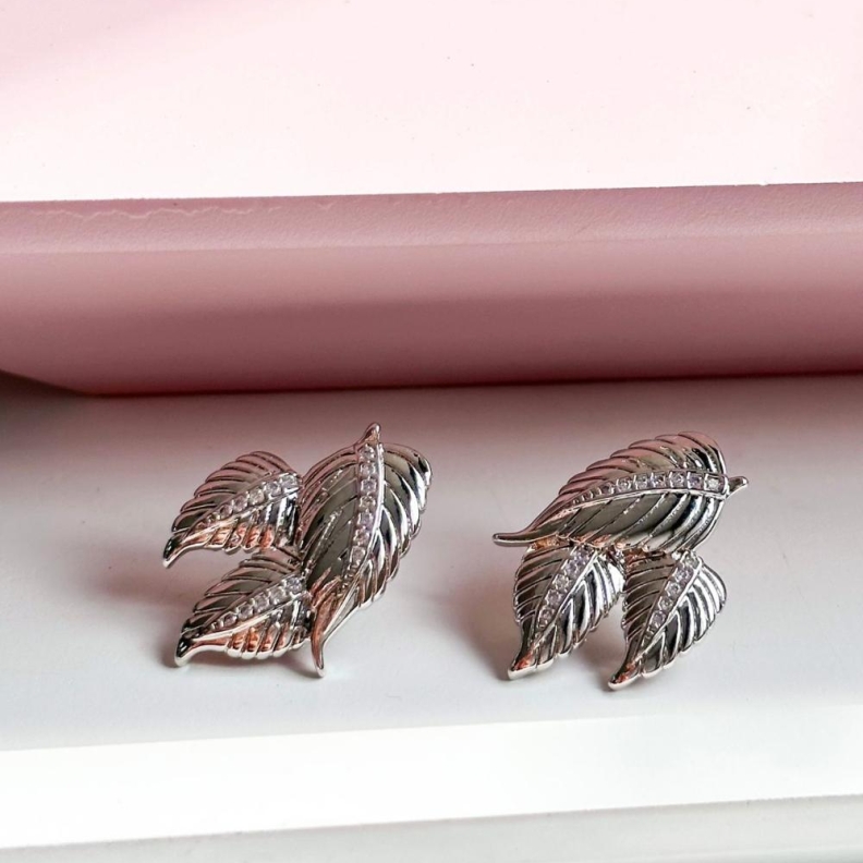 Brinco três folhas em rodio brancoConfira opiniões e avaliações de clientes!