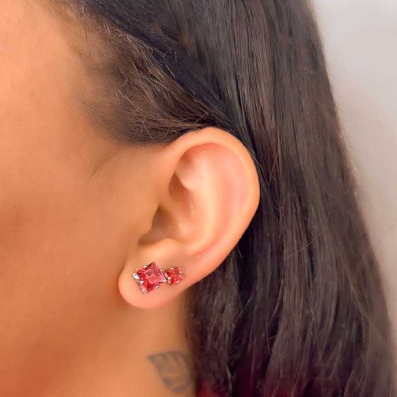 Brinco Zircônia Pink Quadrada G, em ródio.Confira opiniões e avaliações de clientes!