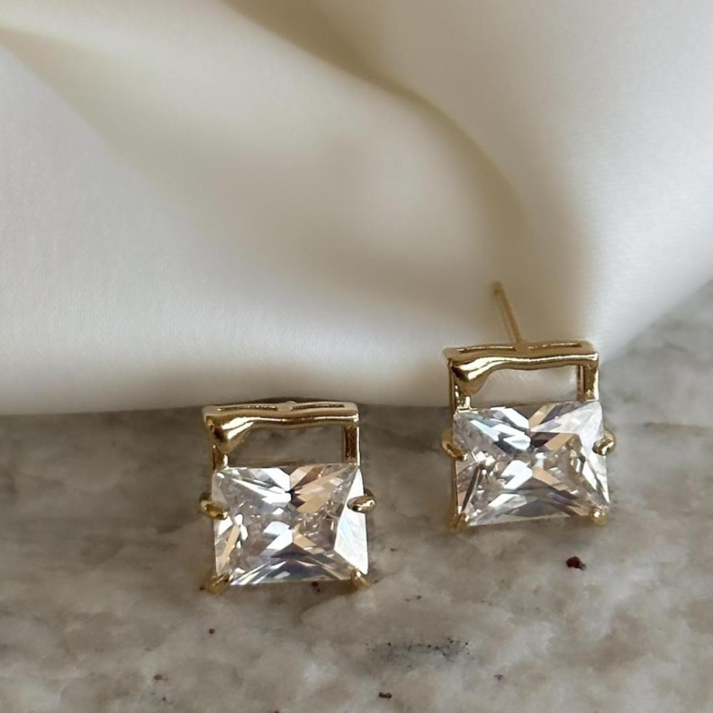 Brinco Zirconia quadrada com alça em ouroConfira opiniões e avaliações de clientes!