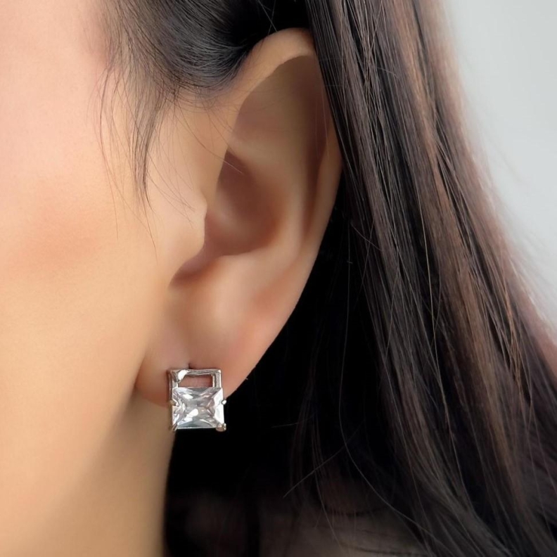 Brinco Zirconia quadrada com alça em RodioConfira opiniões e avaliações de clientes!