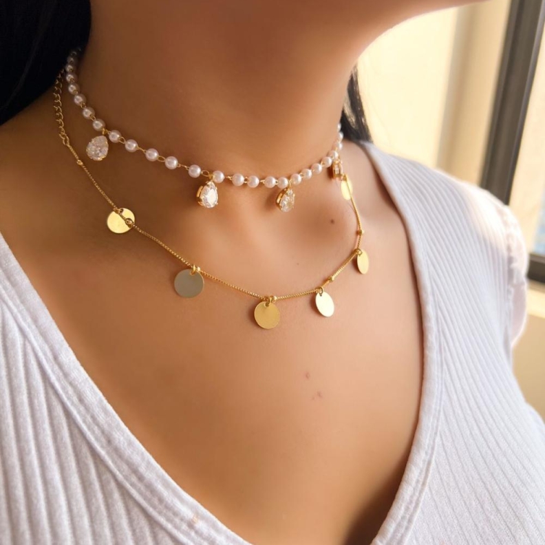 Choker chapinhas e bolinhas, em ouroConfira opiniões e avaliações de clientes!