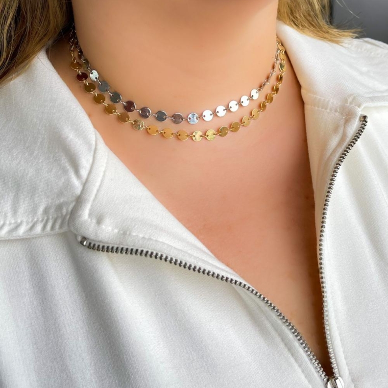 Choker Chapinhas Lisas, em Ródio BrancoConfira opiniões e avaliações de clientes!