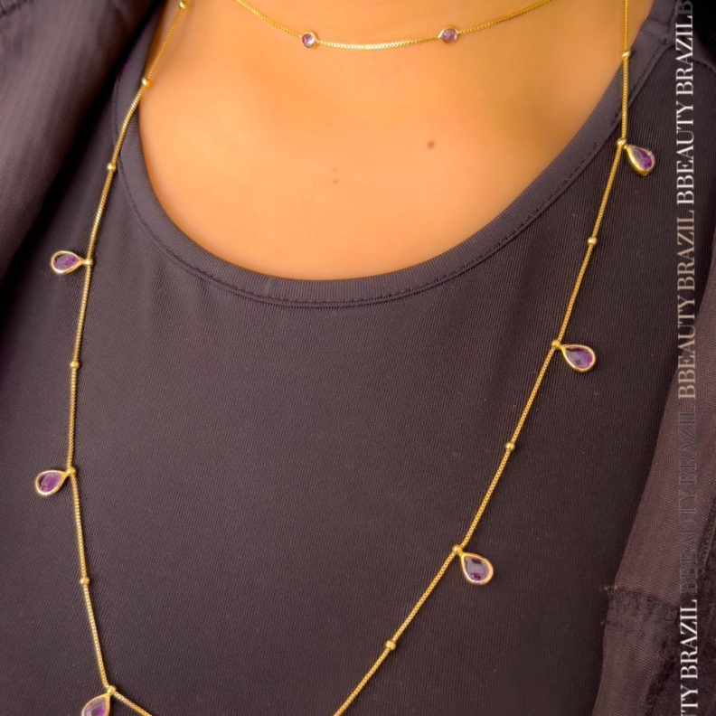 Choker Com Cristais Lilás Em ouroConfira opiniões e avaliações de clientes!