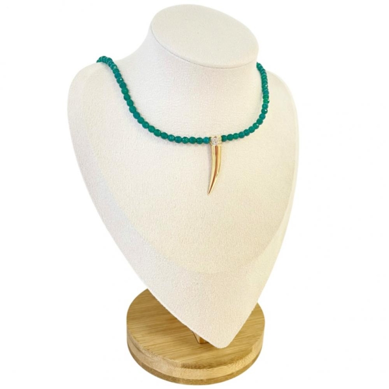 Choker cristais verdes com dente em ouroConfira opiniões e avaliações de clientes!