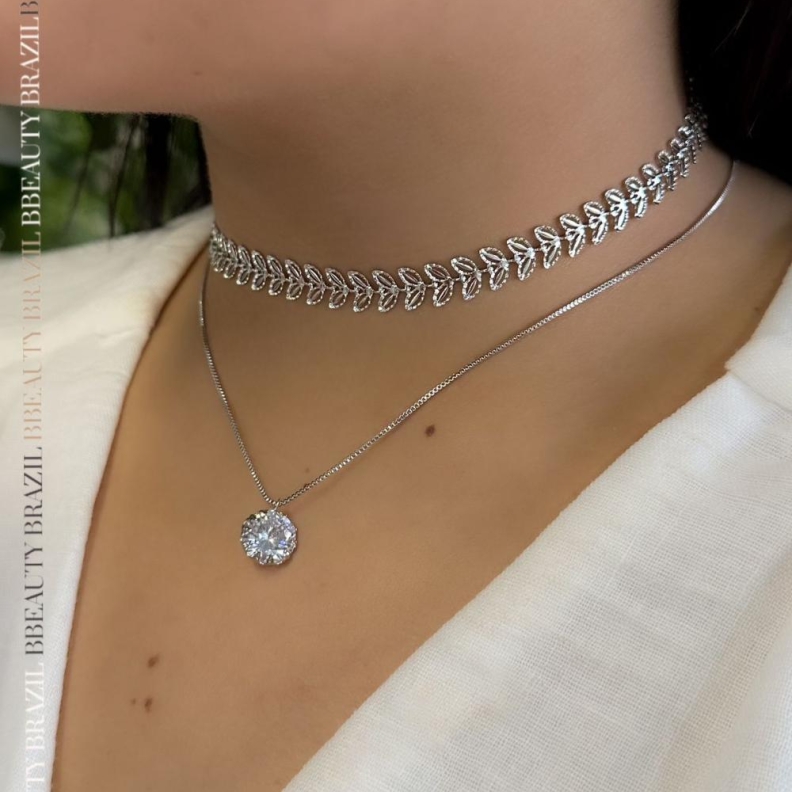 Choker de Folhinhas, em ródio.Confira opiniões e avaliações de clientes!